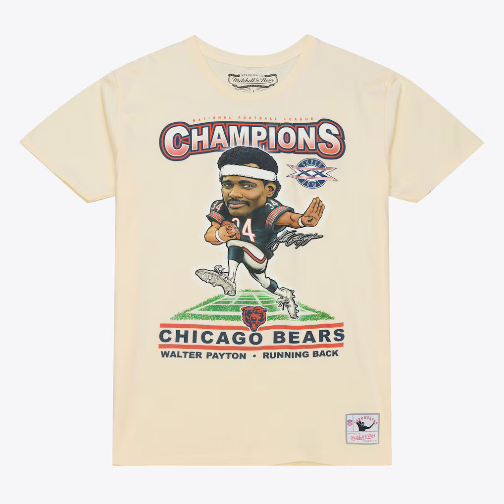 M&N NFL Champions Caricature Classic Chicago Bears 1985 Walter Payton Tee