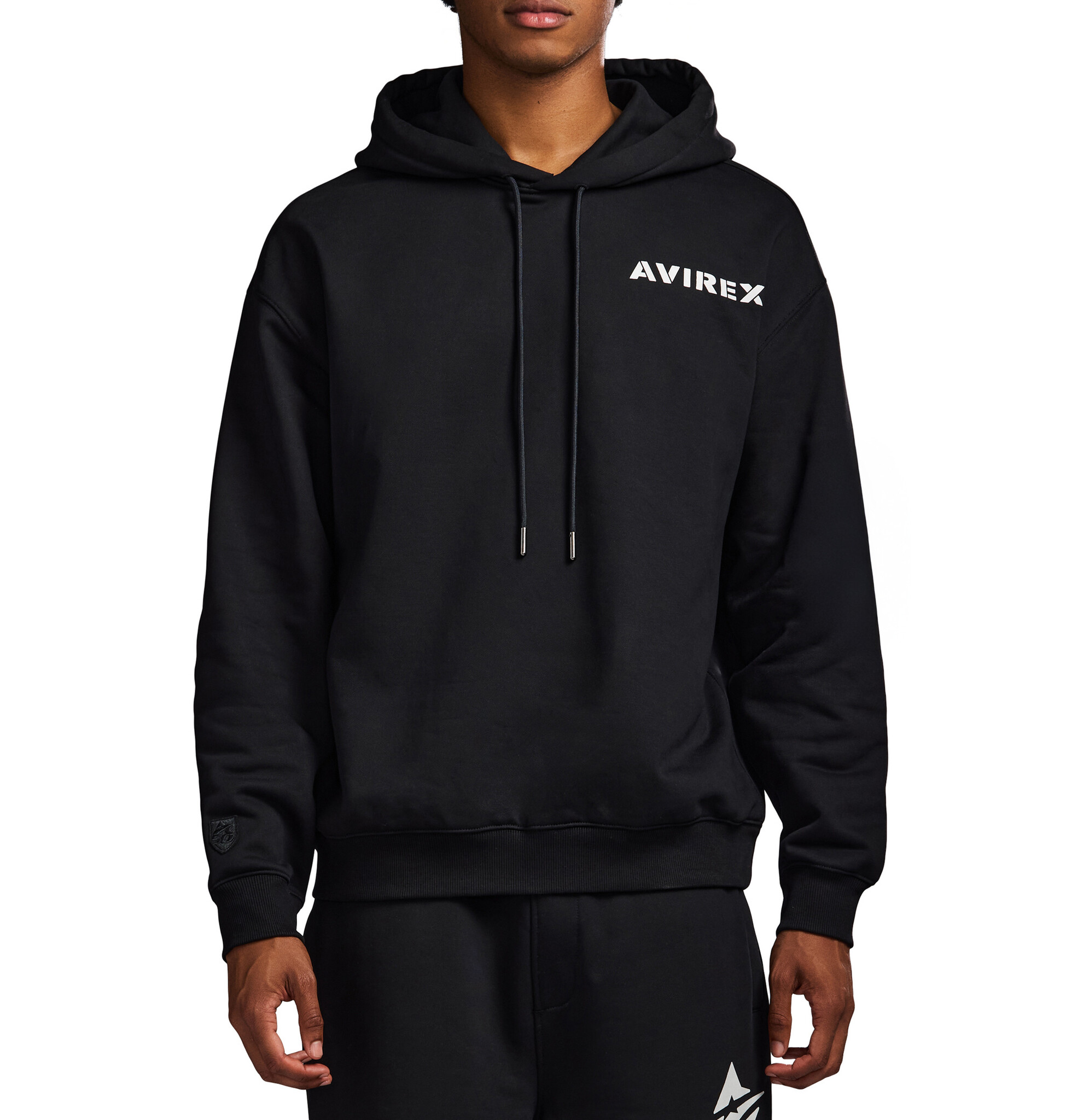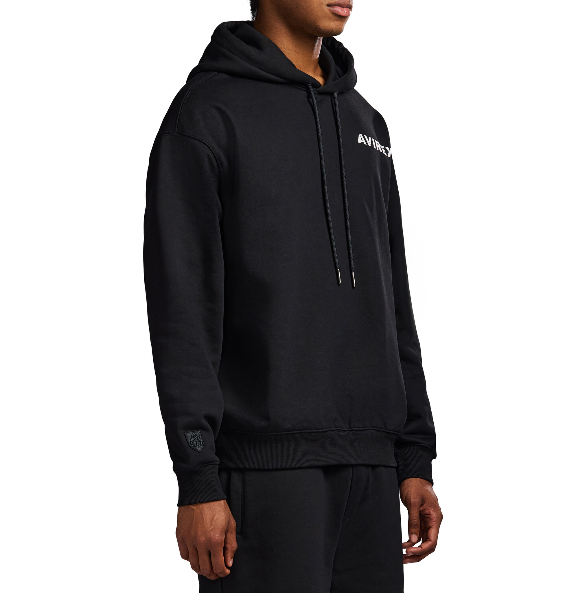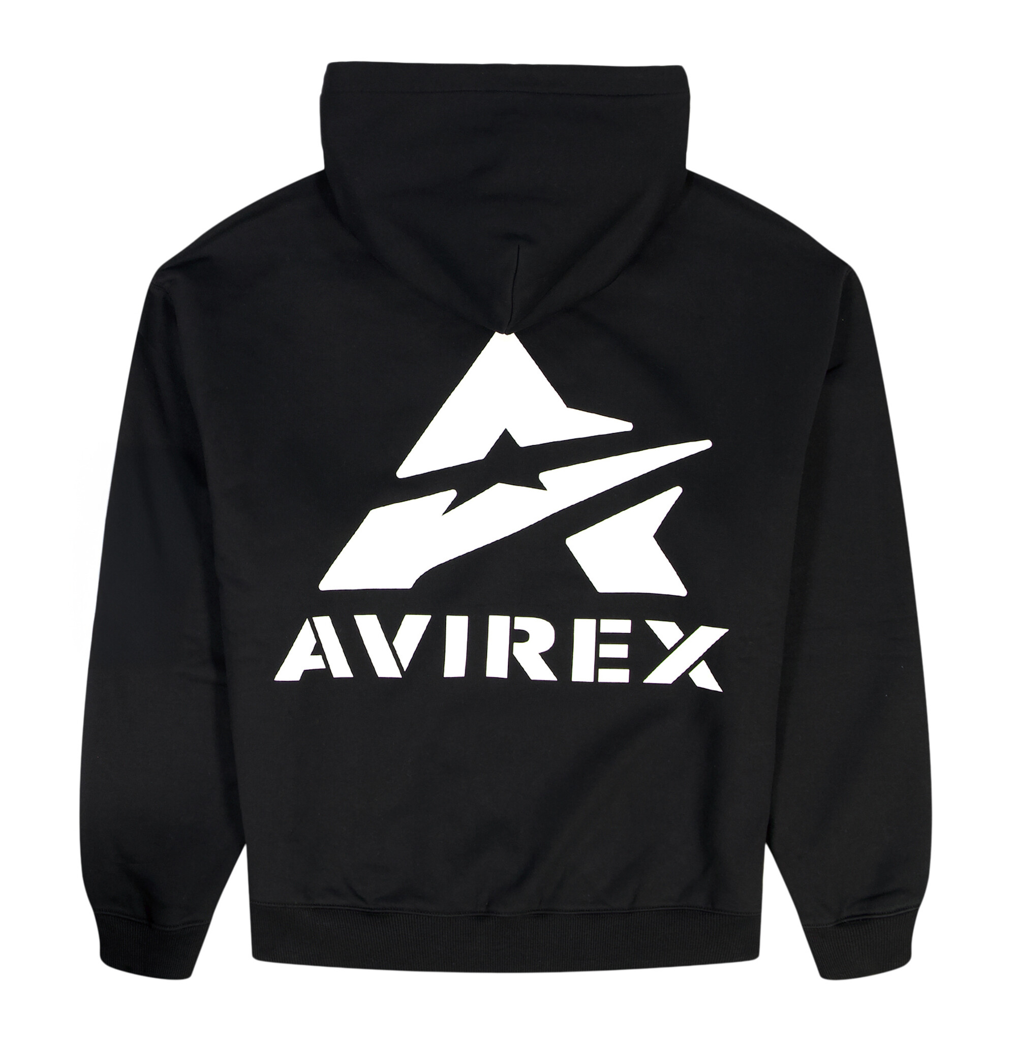 Avirex cotton fleece hoodie. Features Avirex stacked logo at back and logo at front chest.