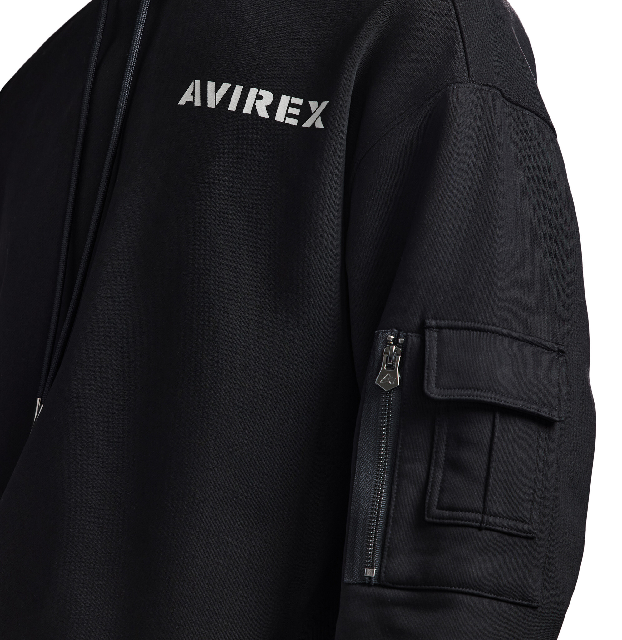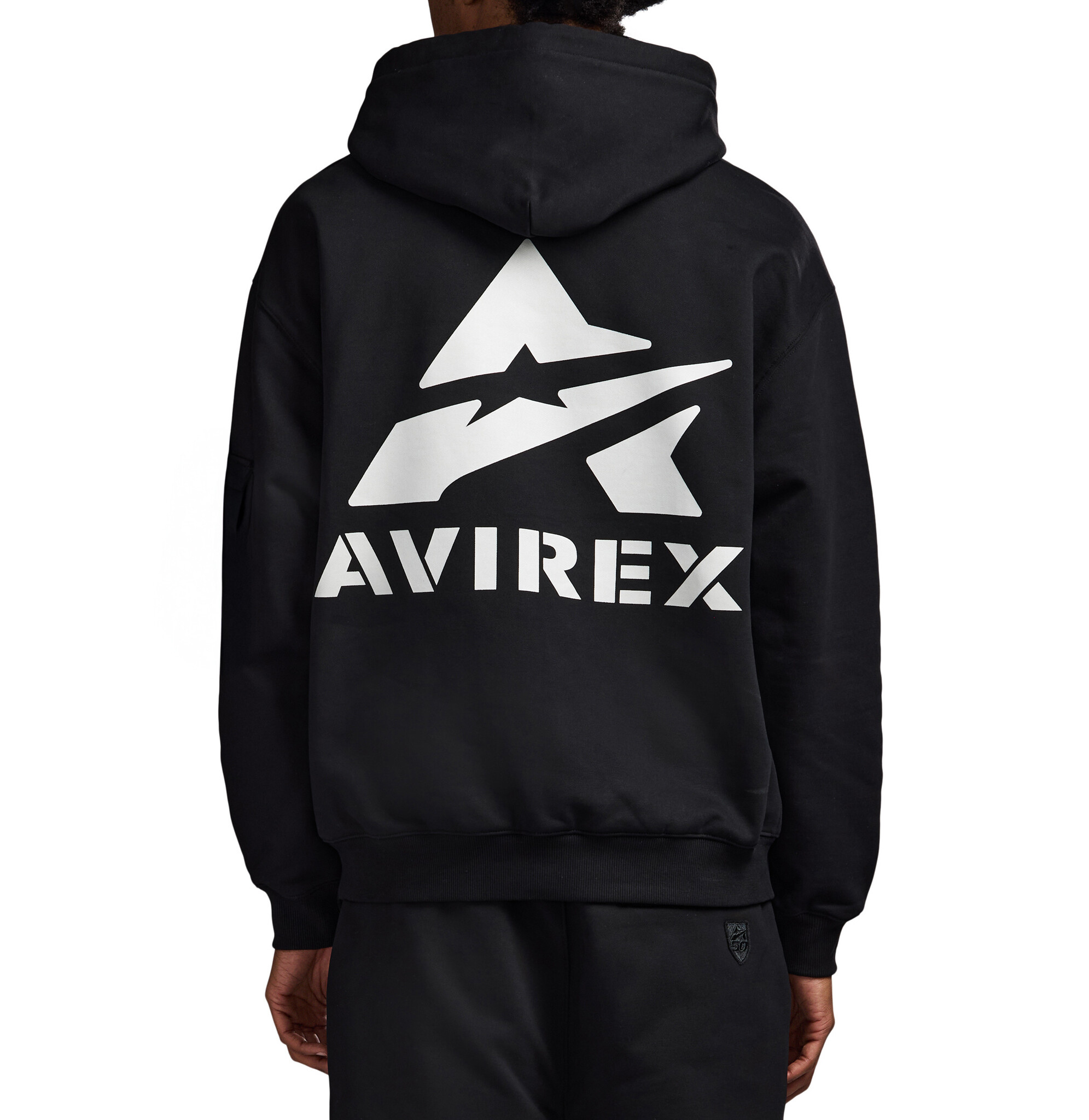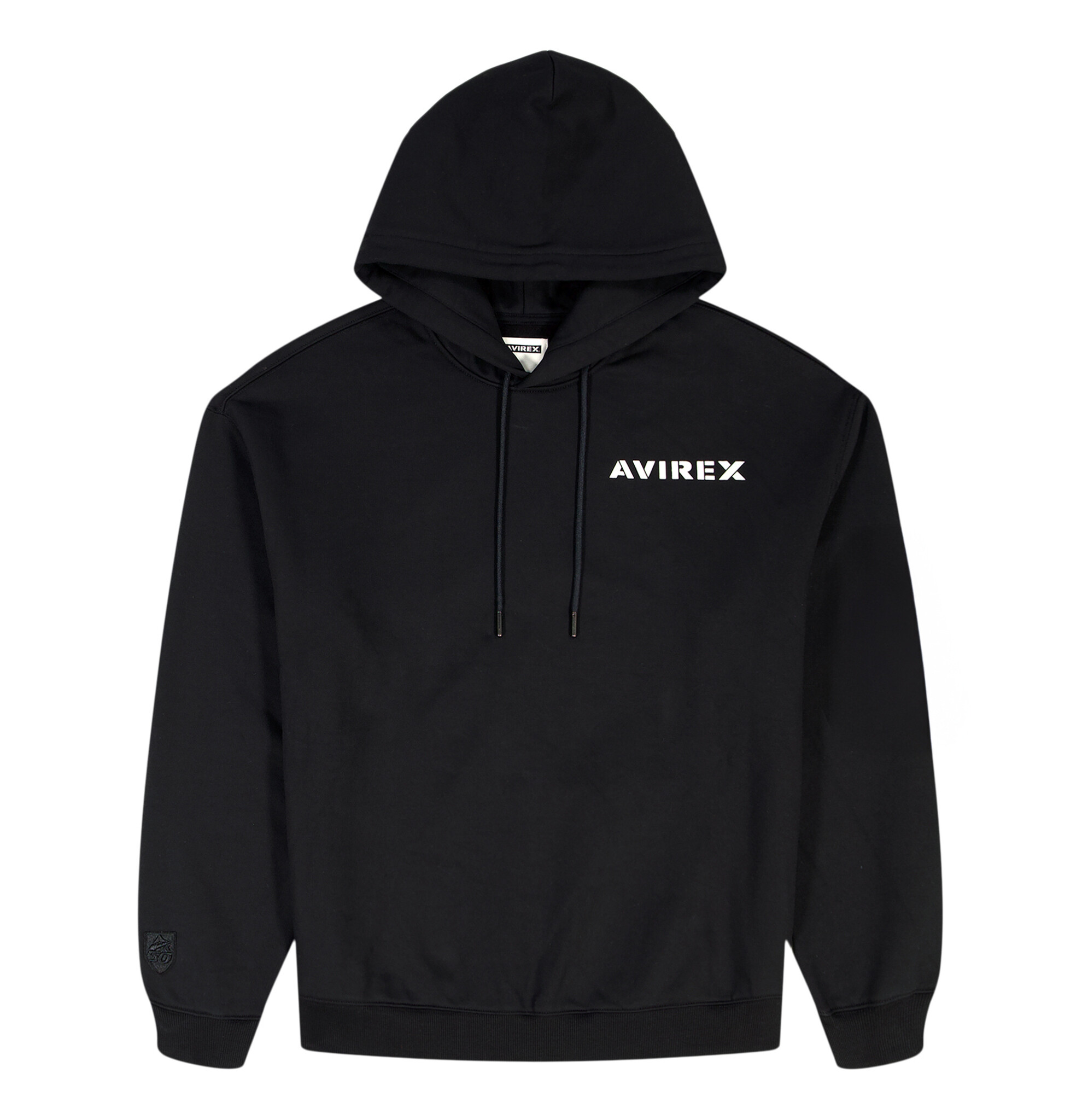 Avirex cotton fleece hoodie. Features Avirex stacked logo at back and logo at front chest.
